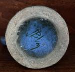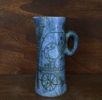 Jacques BLIN (1920-1995) Pichet en céramique émaillé bleu à décor d'oiseaux et de soleil et de girafes Signé sous la base H : 16 cm