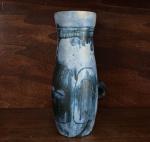 Jacques BLIN (1920-1995) Pichet en céramique émaillé à coulures bleues et vertes Décor incisé de chouettes et poissons Signé sous la base H : 22 cm