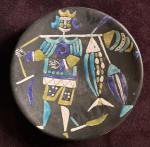 Roger CAPRON (1922-2006) Grande coupe sur talon au roi pêcheur Sur fond noir Signé, daté, situé Diamètre 37 cm Trous d'accroche