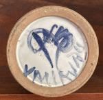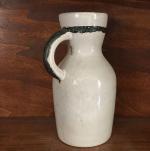 Gustave REYNAUD (1915-1972) Vallauris Pichet en céramique émaillé blanche à décor d'une feuille dans un carré noir Signé en bleu, monogrammé en bleu, situé H : 21 cm