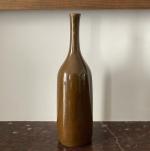 Jacques et Dani RUELLAND (1926-2008 et 1933-2010) Bouteille en terre au manganèse émaillée brun H.: 19.5 cm Signée vers 1960
