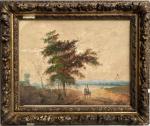 ECOLE FRANCAISE du XIXème Cavalier dans un paysage Aquarelle portant une signature F. Ziem en bas à gauche 31 x 40 cm à vue (nombreuses traces d'humidité)