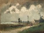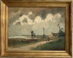 Albert HIRTZ (1898-1976) Personnage près du calvaire devant les moulins Huile sur toile signée en bas à droite 46 x 61 cm