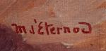 Marcel Victor D'ETERNOD (1891-1971) Paysage aux rochers devant les montagnes enneigées Huile sur toile signée en bas à droite, annotée "Miramar" au dos 46 x 55 cm
