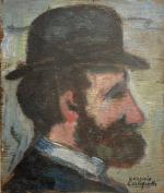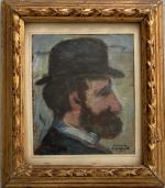 Eugenio CRISTOFOLETTI [italien] (1912-1981) Portrait d'homme de profil Huile sur panneau signée en bas à droite 14 x 12 cm