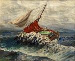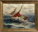 ECOLE FRANCAISE du XXème Bateau dans la tempête, 1946. Huile sur toile signée et datée en bas à gauche 60 x 73 cm