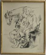 Jean BRUNEAU (1921-2001)Le jeune cavalier Lithographie signée en bas à droite 64 x 52.5 cm à vue