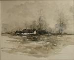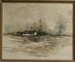 Jean MORLAINE (né en 1953) La Vendée, bourrines dans le marais, 1978. Aquarelle signée, située et datée en bas à droite 49 x 60 cm à vue
