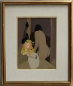 Freddy DEFOSSEZ (né en 1932) Nu au bouquet Gouache signée en bas à droite 31.5 x 23.5 cm à vue