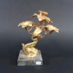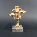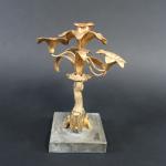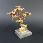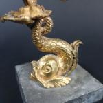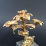 Bougeoir formé d'un dauphin supportant un bouquet de lys, sur base en marbre gris. Haut. : 19 cm (manque les pistils, bobèche déformée) 88