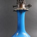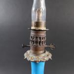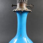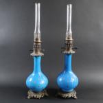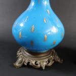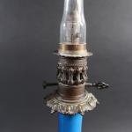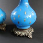 Paire de lampes à huile de forme balustre en opaline bleue et semi doré, monture bronze, ép. XIX's