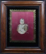 Portrait brodé de Napoléon Ier monogrammé C- EG, 28 x 21, entourage églomisé dans un cadre palissandre 116