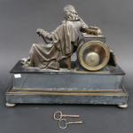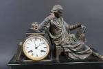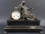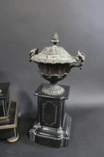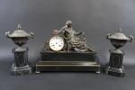 Garniture de cheminée d'époque Napoléon III et bronze patiné et marbre noir, comprenant une pendule...