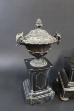 Garniture de cheminée d'époque Napoléon III et bronze patiné et...