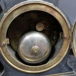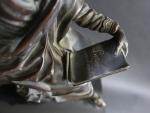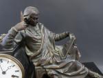 Garniture de cheminée d'époque Napoléon III et bronze patiné et marbre noir, comprenant une pendule à sujet de Blaise Pascal écrivant les Lettres Provinciales. Haut. : 34 cm, et une paire de cassolettes, le couvercle à décor de feuilles de chêne. Haut. : 30 cm