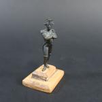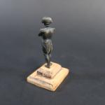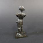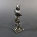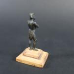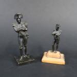 Deux petits sujets en bronze patiné représentant Napoléon 1er debout. Haut. totales : 10,5 et 8,5 (l'un à refixer sur son socle, l'autre socle en bois rapporté)