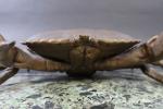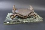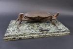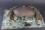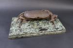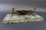 FADY Eugène (XX's) : Encrier en forme de crabe en bronze patiné, la carapace ouvrant et découvrant les deux godets d'encre, et posant sur un socle en marbre vert de mer, signé. Haut : 16 cm - Long : 42 cm - Prof : 21 cm
