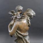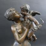 MOREAU Mathurin (1822-1912) : Allégorie à l'Amour. Bronze patiné signé, marqué "Hors-concours" et cachet "Médaille d'honneur". Haut : 52 cm
