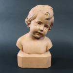 DANIEL D. (XX's) : Buste de fillette. Terre cuite signée. Haut : 26 cm