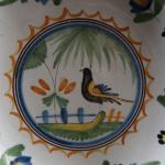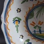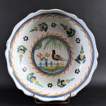 NIVERNAIS : Jatte à bord contour en faience à décor polychrome d'un oiseau posé sur un tertre, ép. fin XVIII's - début XIX's. Diam : 34 cm - Haut : 9 cm
