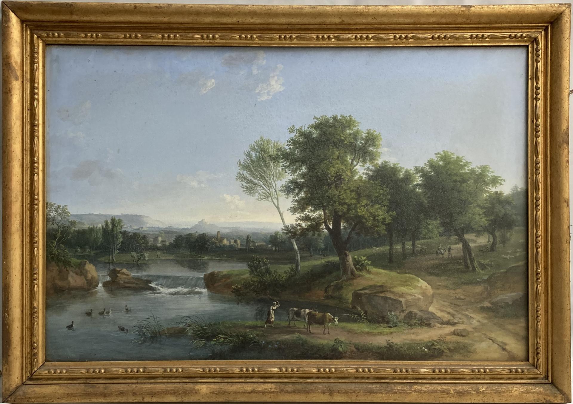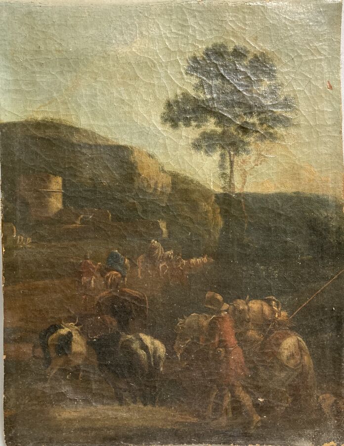 Ecole HOLLANDAISE de la fin du XVIIe siècle Le retour du troupeau Toile marouflée sur carton 29 x 22 cm