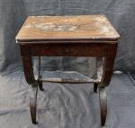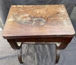 TABLE A JEUX en acajou et placage d'acajou, plateau portefeuille XIXème H.: 74 cm l.: 59 cm P.: 41 cm (mauvais état)
