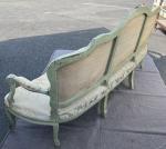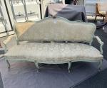 CANAPE en bois sculpté, mouluré et rechampi, garniture postérieure Epoque Louis XV H.: 95 cm L.: 183 cm P.: 63 cm (accidents et manques)