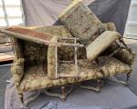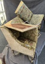 CANAPE et deux FAUTEUILS en bois naturel Style Louis XIII H.: 102 cm L.: 184 cm P.: 65 cm pour le canapé H.: 114 cm l.: 55 cm P.: 49 cm pour les fauteuils (mauvais état de l'ensemble)