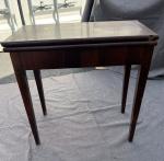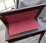 TABLE A JEUX en acajou et placage d'acajou, plateau portefeuille XIXème H.: 75 cm l.: 38 cm P.: 75 cm (accidents et manques)
