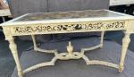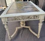 TABLE DE MILIEU en bois sculpté, mouluré et rechampi XIXème H.: 77 cm L.: 151 cm l.: 91 cm (accidents et manques)