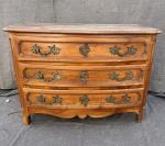 COMMODE en bois naturel ouvrant à trois tiroirs en façade H.: 83 cm l.: 117 cm P.: 77 cm (accidents)