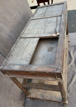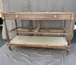 CONSOLE en acajou sculpté et mouluré Début XIXème H.: 90 cm P.: 143 cm P.: 54 cm (nombreux accidents et manques dont les plateaux)