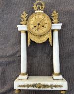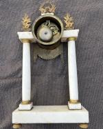 PENDULE portique en marbre blanc et bronze Début XIXème H.: 46 cm l.: 25 cm