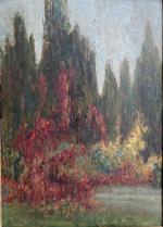 Jean Gabriel GOULINAT (1883-1972) Paysage arboré, 1909. Huile sur panneau signée et datée en bas à droite 40 x 26 cm