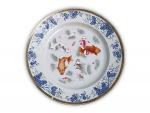 CHINE Compagnie des Indes Plat rond en porcelaine à décor famille rose de poissons XVIIIème D.: 38.5 cm (accidents, manques et restaurations)