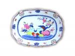 CHINE Compagnie des Indes Plat rectangulaire à décor famille rose dit pseudo feuilles de tabac, l'aile chantournée XVIIIème, époque Kien-Long 22 x 30 cm (très légers sauts d'émail)