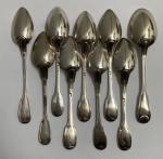 Neuf CUILLERES A THE en argent, différents modèles Vieillard à Minerve Poids: 200 gr