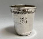 TIMBALE en argent, chiffrée Minerve H.: 7.5 cm Poids: 46 gr (chocs et déchirures)