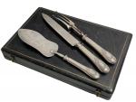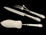 SERVICE A DECOUPER et PELLE A GATEAU en argent fourré et métal, à décor d'un médaillon perlé Minerve L.: 28.5 à 32.5 cm Poids brut: 392 gr (dans un écrin)