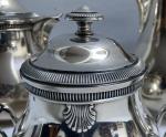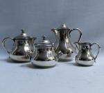 SERVICE A THE et CAFE en argent uni, le col souligné de godrons et coquilles Minerve. Orfèvre: J. GRUHIER, insculpation en 1897 H. max: 18.5 cm Poids: 1 kg 415 (un frétel accidenté)