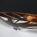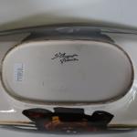 Centre de table de forme oblongue en faience à décor de motifs abstraits en camaieu brun.