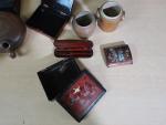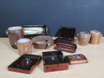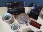 Lot divers comprenant : boites à bijoux en laque du Japon, récipients en grès (manque les couvercles) (usures).