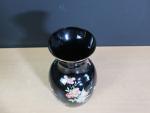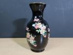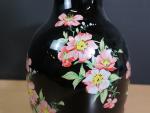Vase noir en verre teinté à décor de fleurs et dorure (haut : 34 cm) (légères usures)