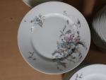 Limoges : Partie de service de table en porcelaine blanche décoré de fleurs comprenant : 8 assiettes creuses (diamètre : 23 cm) et 56 assiettes plates (diamètre : 23 cm)
