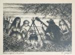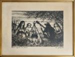 Henry GESEGNET (?-2002) Personnages près du feu Dessin à l'encre signé en bas à droite 47 x 57 cm à vue