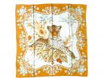 Salvatore FERRAGAMO Carré soie imprimée motif Tigre tons crême et orange 85 x 85 cm