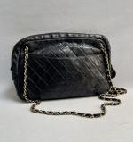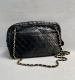 Sac à main en cuir matelassé noir avec des motifs de losanges en surpiqûres.