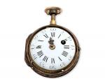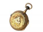 MONTRE A COQ en or, fond gravé d'une scène d'amours, poids brut 60,7 g XVIIIème (le verre désolidarisé)