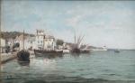 S. RICARD (XIX-XXème) Paysage maritime en Méditerranée Huile sur toile signée en bas à gauche 40.5 x 65 cm
