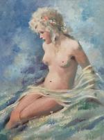 G. ARBOIS (XXème) Pudeur Huile sur toile signée en bas à droite, contresignée et titrée au dos 61 x 46 cm